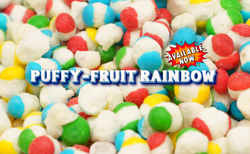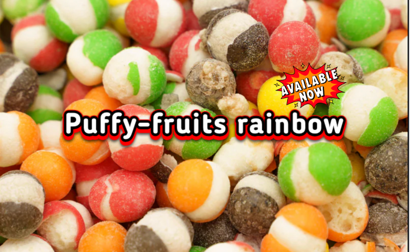 “Puffy Fruit Rainbow – light, crunchy bites bursting with sweet and colourful fun in every bite!”$4.49 CAD