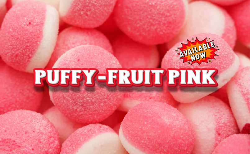 “Puffy Fruit Pink – soft, airy fruit puffs with a sweet crunch and a fun pink twist.$4.49 CAD